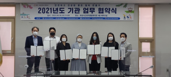 시 노사민정협의회는 16일 화성시근로자종합복지관에서 화성시일자리센터, 화성여성새로일하기센터, 화성시청년지원센터, 화성시외국인복지센터, (사)화성시도시형소공인협의회 총 5개 기관과 업무협약을 체결했다고 밝혔다.