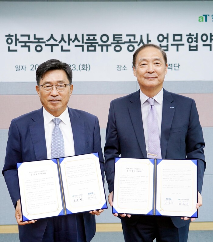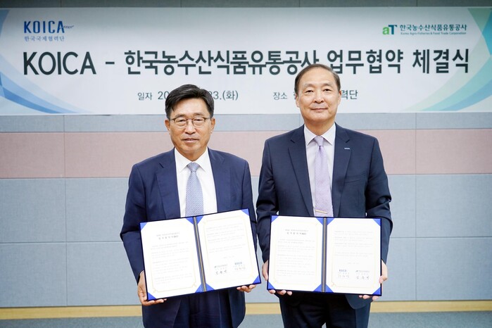 코이카와 한국농수산식품유통공사가 23일 경기도 성남시 소재 코이카 본부에서 저탄소 식생활 확산과 글로벌 인재육성을 위한 업무협약(MOU)을 체결했다.