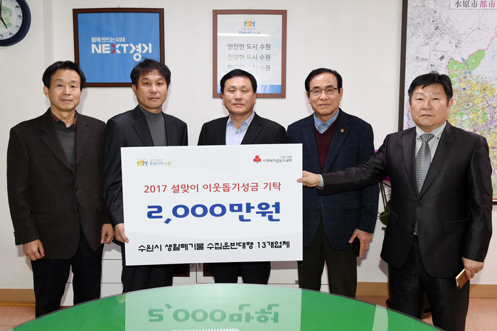 성금을 전달한 대행업체는 총 13개로 수원시와 계약을 통해 올 한 해 동안 시 전역의 모든 생활쓰레기를 수집‧운반하게 된다.