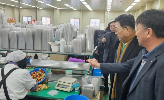 [로컬세계=이명호 기자]한국농수산식품유통공사(사장 김춘진) 22일 경남 진주 소재 수곡농협(조합장 문수호) 수출 딸기 선별장이 있는 농산물 유통센터를 찾아 딸기 작황 및 출하현황 등 현장을 점검하고, 한국딸기수출통합조직인 농업회사법인 (주)케이베리(대표 서현우)와 함께 딸기 경쟁력 강화 및 수출 활성화 방안을 논의했다.
