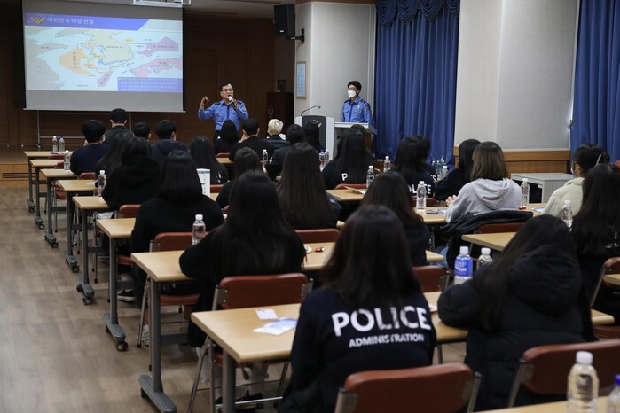 [로컬세계 부산=맹화찬 기자]남해지방해양경찰청은 18일 오후, 신라대학교 경찰행정학과 교수와 재학생 등 40여명을 대상으로 특강 및 채용설명회, 현장부서(VTS, 함정) 견학행사를 통해 뜻깊은 시간을 가졌다.