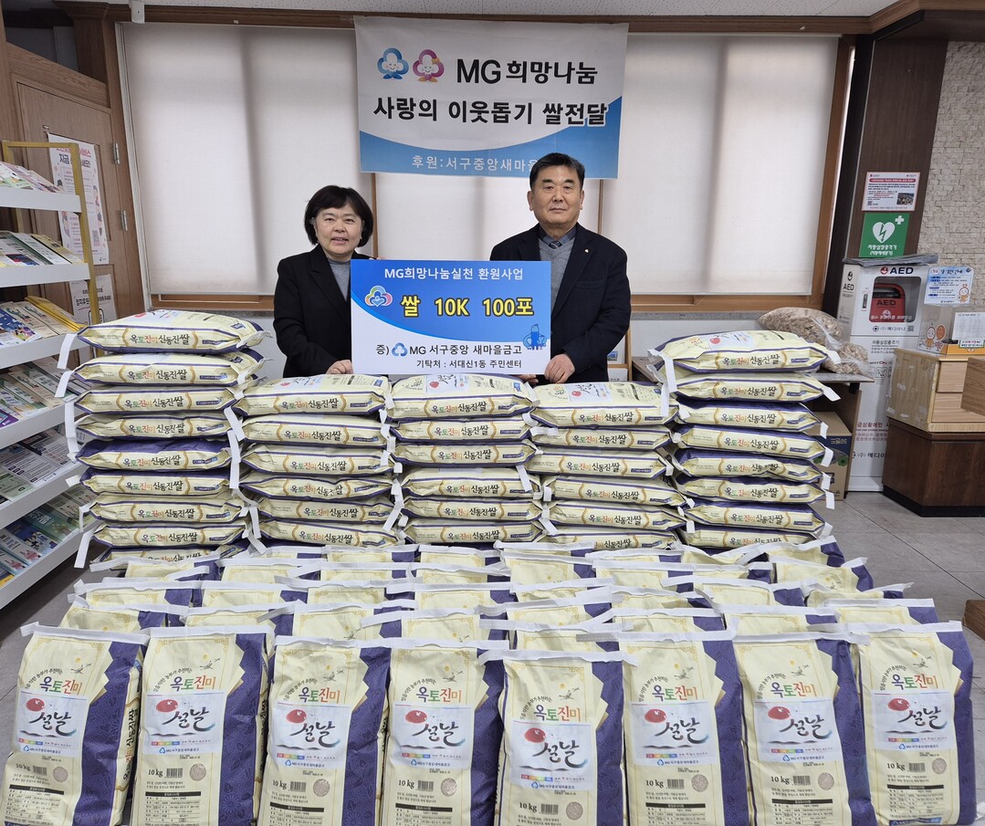 서구중앙새마을금고는 매년 명절마다 백미를 기탁하여 소외계층을 위한 희망 나눔을 실천하고 훈훈한 설 명절을 지원하고 있다.