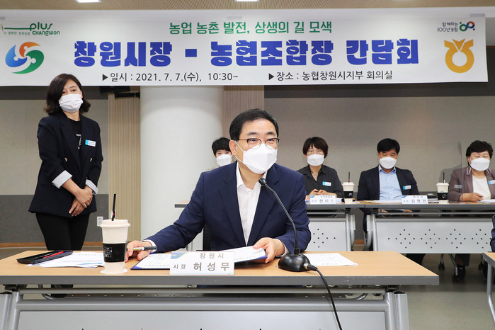 [로컬세계 권인진 기자]허성무 경남 창원시장은 7일 오전 농협창원시지부 회의실에서 관내농협 조합장들과 농정 간담회를 갖고 농업 현장의 생생한 목소리를 청취했다.
