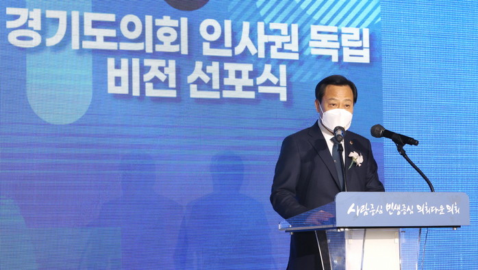 ▲장현국 의장, ‘경기도의회 인사권 독립’ 기념 비전 선포. 경기도의회 제공 |