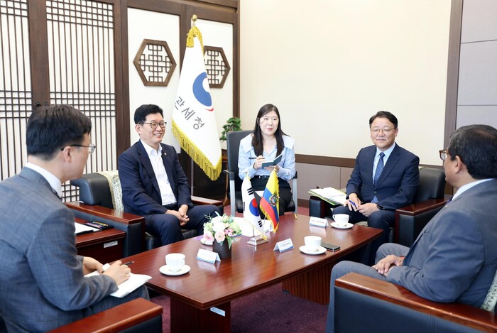 고광효 관세청장은 9일 오후 서울세관에서 루이스 알베르또 하라미요(Luis Alberto Jaramillo) 에콰도르 관세청장을 만나 에콰도르 전자통관시스템(ECUAPASS) 고도화 사업과 관련한 협력 방안을 논의했다.