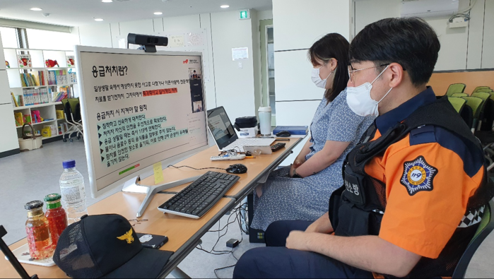 [로컬세계 맹화찬 기자]부산 해운대소방서(서장 김헌우)는 28일 관내 건강가정지원센터 회원들 대상 코로나 시대에 발맞춘 비대면 교육으로 기도폐쇄처치 등 응급처치교육을 실시 했다.