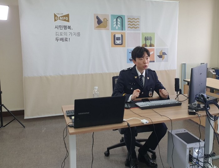 | ▲김포경찰서 지능수사팀 김진연 수사관이 시민대상 전화금융사기예방법을 비대면 교육을 진행하고 있다. 김포시 제공 |