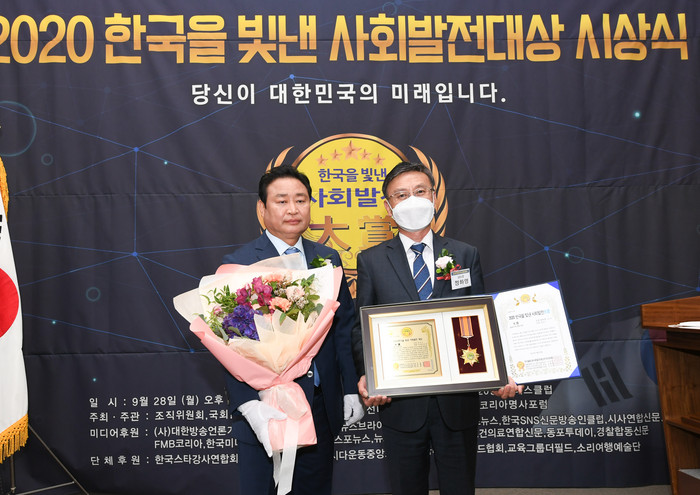 정 시장은 이달 초 코로나19 극복 대책 마련과 지역경제 활력화 성과를 인정받아 ‘2020 대한민국 국가사회공헌대상’을 수상한데 이어 또다시 전국 단위 대상을 수상하게 됐다.