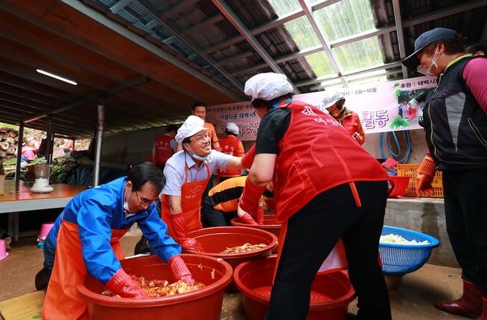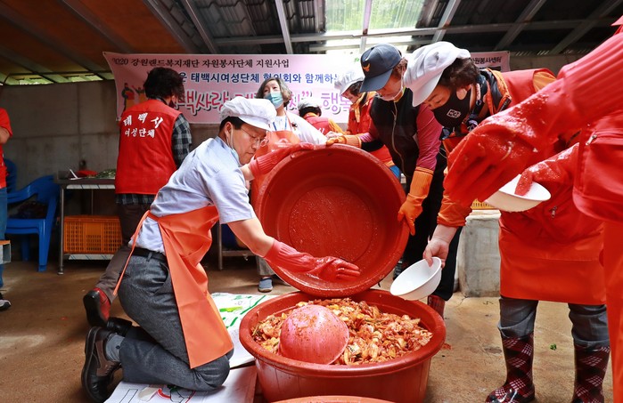 류태호 태백시장은 “그동안 코로나19 감염 예방과 확산 방지를 위해 여러모로 애써주셨는데, 오늘은 또 이렇게 비가 오는 날씨 속에서도 이웃에게 김치를 나누기 위해 귀한 자리를 마련해 주심에 감사드린다”며 “앞으로도 지역의 어려운 이웃에게 빛과 소금 같은 역할을 해주시기 바란다”고 말했다.