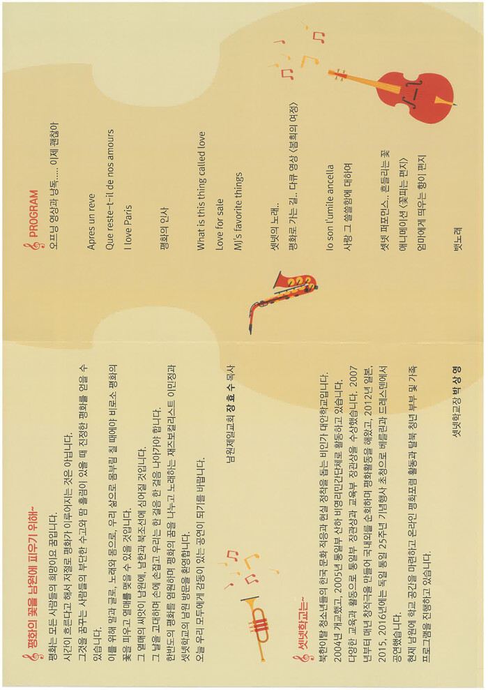 이날 콘서트는 프랑스 파리에서 활동중인 재즈뮤지션 이민정과 버클리음대 출신 재즈 피아니스트 김가온이 함께하며, 입장티켓을 통해 모금된 금액은 남원지역 북한이탈주민 지원 기금으로 사용될 예정이다.