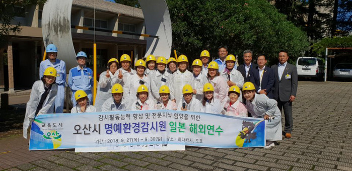 이번 선진지 견학에는 감시원 17명과 공무원 등이 참가해 오산시와 자매도시인 일본 히다카시의 태평양시멘트, 분뇨처리시설, 하수처리시설 등을 방문했다.