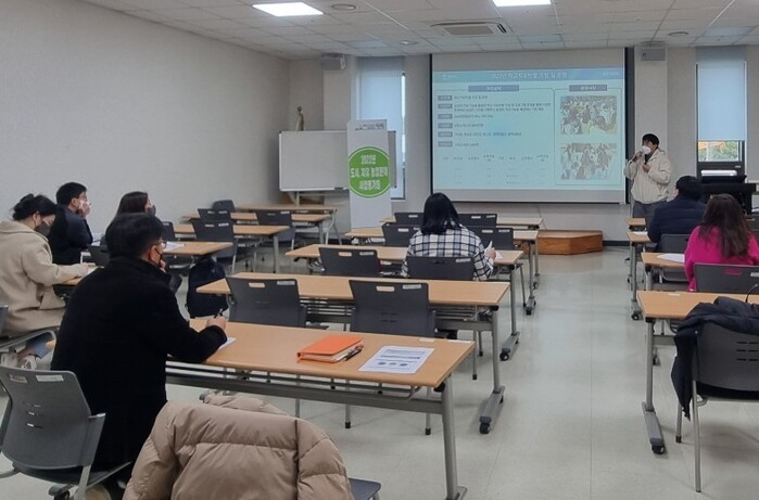 이번 평가회는 학교 치유텃밭 조성 및 운영사업 6개교와 특수학급 연계 치유농업 프로그램 교육 11개교 사업 담당 교사들이 참여해 2022년도 사업 추진 결과에 대해 보고하고 평가했으며, 이를 토대로 2023년도 사업계획을 수립하는 시간이 됐다.