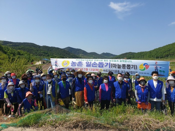 이날 일손돕기는 코로나19의 장기화로 인력난을 겪고 있는 농촌지역 농가를 돕기 위해 마련된 것으로, 대구 서구 바르게살기운동협의회 회원 40여 명은 경상북도 의성군 춘산면 사미리에 소재한 마늘 농가를 방문해 더운 날씨에 구슬땀을 흘리며 마늘쫑 제거 작업에 힘을 보탰다.
