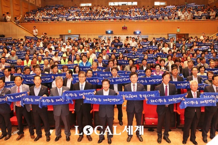 시는 8일 오후 시청 대강당에서 민‧관‧산‧학‧연 관계자 등 700여 명이 참석한 가운데 ‘다시 뛰는 대전경제, 우리가 함께합니다.’라는 슬로건으로 ‘4차 산업혁명 특별시, 대전비전 선포식’을 개최했다.