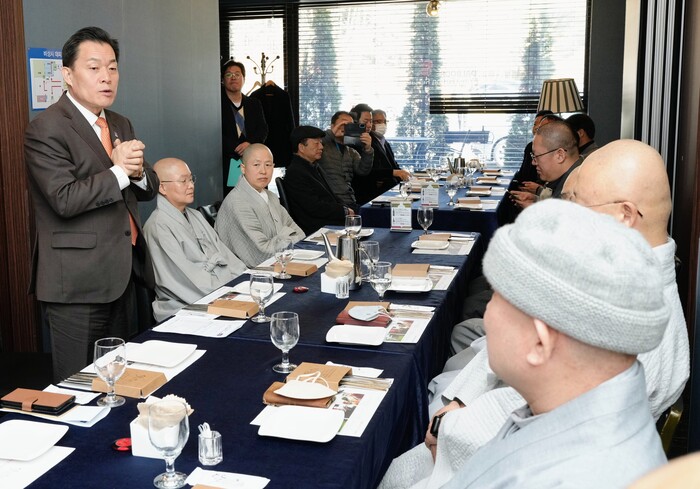 이날 간담회에는 수원사 주지 보선스님 대승원 주지 수산수님, 무학사 주지 혜성 스님 등 관내 사찰 주지 스님 등 불교연합회 관계자 20여 명이 참석했다.