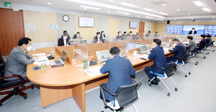 | ▲백군기 용인시장이 25일 시청 영상회의에서 시정전략회의를 주재하고 있다. 용인시 제공 |