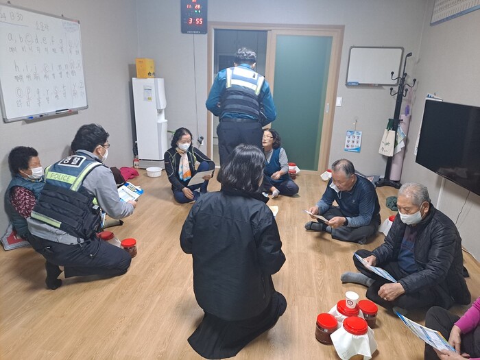 [로컬세계=김경락 기자]전북 고창경찰서는 7일 고창읍내 마을회관을 방문해 어르신들을 상대로 전화금융사기 예방을 위한 수법 및 예방법이 담긴 홍보 전단지를 배포하는 등 예방 활동을 펼쳤다.