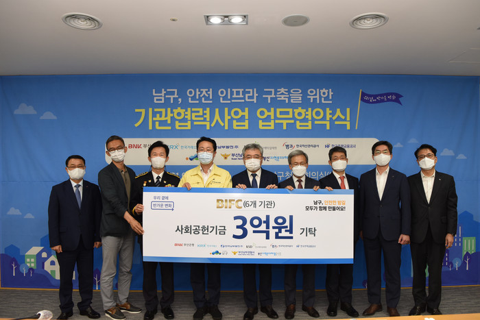 1일 부산 남구청에서 업무협약을 체결하고 BIFC 6개 입주기관의 사회공헌기금 3억원의 사업비로 10월부터 부산 남구 지역안전 인프라 구축사업을 시작할 예정이다.