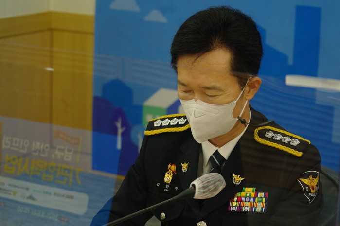 ▲김만수 부산 남부경찰서장이 서명하고 있다. (사진=맹화찬 기자) |