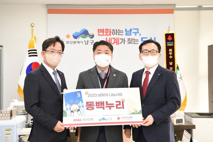 [로컬세계=맹화찬 기자] 부산 남구는 지난 16일 BNK금융그룹희망나눔재단이 이찬일 남부수도권영업본부장 등이 참석한 가운데 지역 내 저소득 계층을 위한 2,750만원 상당의 부산관광상품권 전달식을 가졌다고 19일 밝혔다.