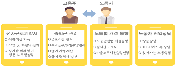 이에 시는 스마트폰만 있으면 근로계약서 작성부터 계약 체결, 보관까지 간편하게 할 수 있는 모바일 앱 '스마트 노무사(가칭)'를 소상공인연합회와 공동 개발해 내년 상반기부터 본격 운영한다.