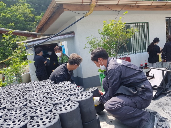 지난 5월에는 비로 인해 업체 배달로 진행했지만, 지난 6월 5일 철암동주민자치회 청년분과 철암청년회가 주축이 되어 장애와 고령으로 어려운 2가구에 각각 250장의 연탄을 직접 배달하는 봉사 활동을 진행했다.