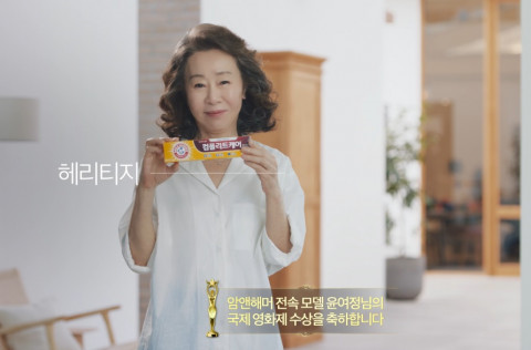 윤여정은 유한양행이 공식 수입·판매하는 미국 1등 베이킹소다 브랜드 ‘암앤해머(ARM&HAMMER)’의 전속 모델로 지난해부터 활동하고 있다.