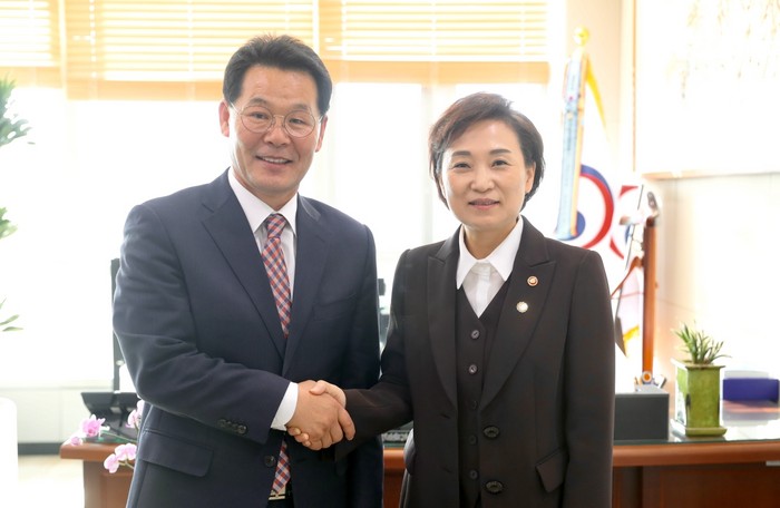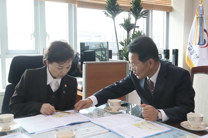 ▲권익현 부안군수, 김현미 국토부 장관 면담 현안 협조 당부.(부안군 제공) |