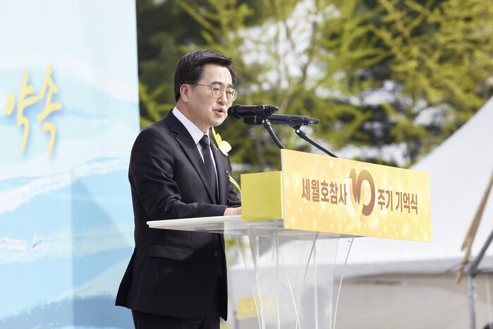 김 지사는 이어 “유가족과 피해자들이 충분히 회복될 때까지, 우리 사회에 ‘안전’과 ‘인권’의 가치가 제대로 지켜질 때까지, 언제까지나 기다리겠다. 이번 정부에서 하지 않는다면 다음 정부에서라도, 세월호의 교훈이 우리 사회에 온전히 뿌리내리도록 끝까지 기억하고, 함께하겠다”고 강조했다.
