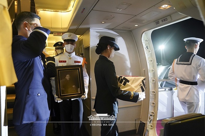 문재인 대통령과 함께 미국 하와이 호놀룰루를 출발한 6·25 전쟁 국군 전사자 유해 68구가 23일 밤 그리던 고국 땅을 밟았다.