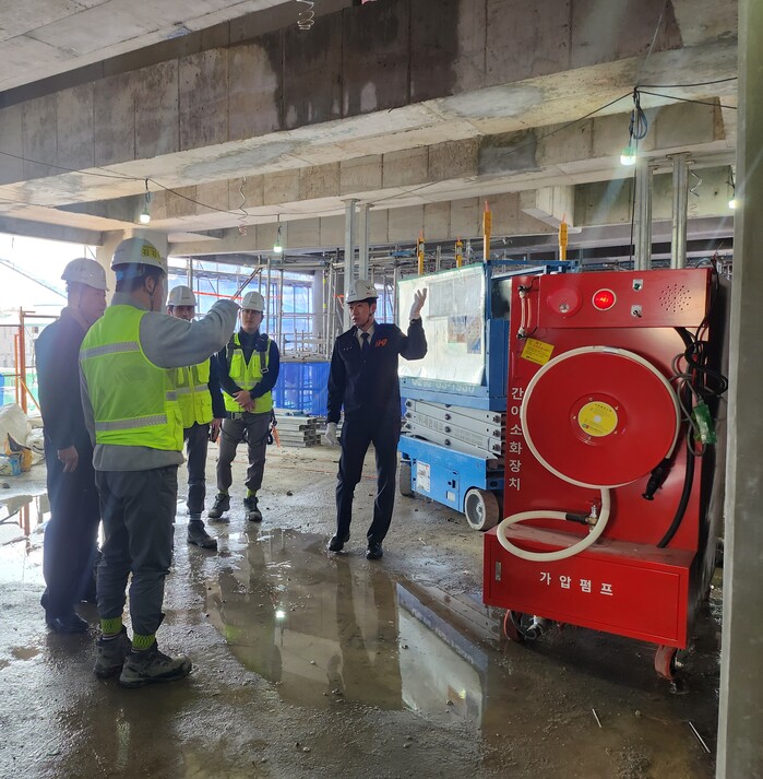 이번 현장지도 방문은 가연성자재 및 용접불티 등 공사장 내 화재 위험요소를 사전에 제거하고 안전관리자의 안전교육을 강화하고자 마련됐다.