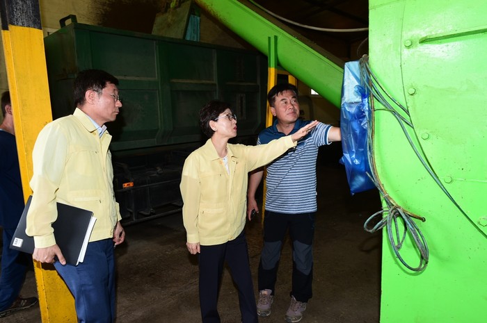| ▲이화순 행정부지사가12일 포천시 창수면 소재 음식물 사료 제조업체를 방문해 점검하고 있다.(경기도북부청 제공) |