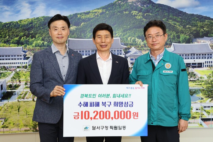달서구 직원들이 성금을 모았으며 사회복지공동모금회를 통해 전달된다. 전달된 성금은 경상북도 내 침수, 산사태 등으로 큰 피해를 입은 지역을 중심으로 구호물품 제공, 이재민 주거 지원 등에 사용될 예정이다.