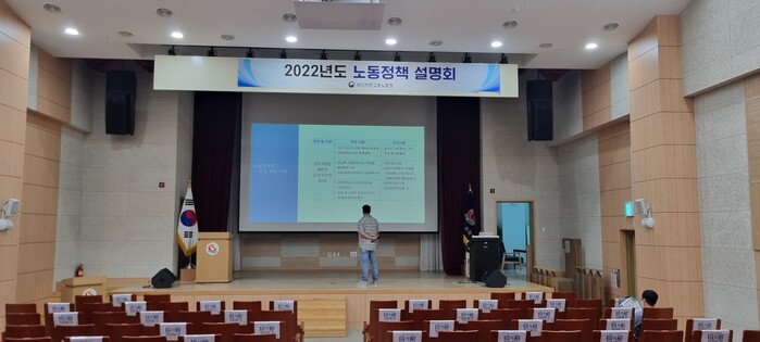 ▲부산고용노동청이 26일 오후 노동정책 현장 순회설명회를 개최한 부산 사하구 제2청사 5층 대강당 전경. 부산노동청 제공 |