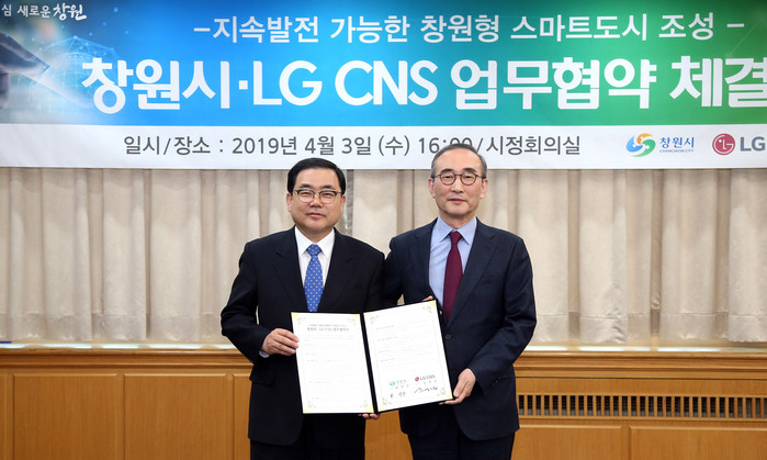 | ▲창원시는 3일 LG CNS와 시민중심의 지속발전 가능한 스마트도시 조성을 위한 업무협약을 체결했다.(창원시 제공) |