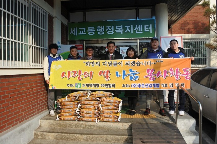 평택애향 99연합회 이윤오 회장은 “2017년 새해를 맞아 동절기에 외로움과 생활고 등으로 어려운 세교동 이웃들을 위해 쌀을 기탁하게 됐다”며, “어려운 이웃들이 작은 도움이지만 따뜻한 정을 느끼며 위로가 되길 바란다”고 전했다.