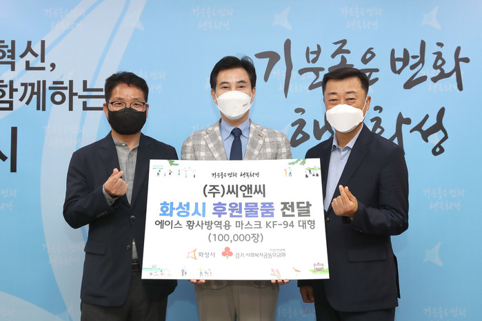 [로컬세계 고용주 기자]경기 화성시는 27일 ㈜씨앤씨가 시에 KF94 마스크 10만 장을 후원했다고 밝혔다.