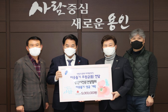 용인시는 7일 용인시전문건설협회 이정성 수석 부위원장 등 관계자 3명이 백군기 시장실을 방문해 성금 500만원을 기탁했다고 밝혔다. 이들은 지난해 12월에도 성금 200만원을 기탁한 바 있다.