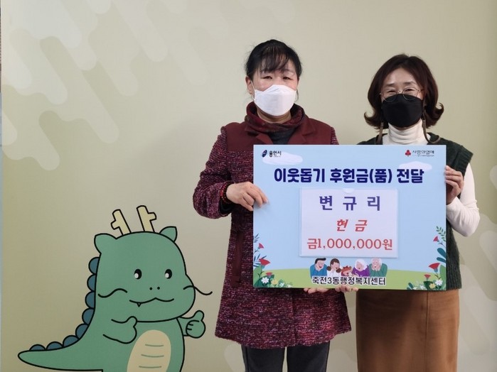 죽전3동에선 31통 통장 변규리 씨가 어려운 이웃을 위해 써 달라며 성금 100만원을 기탁했다.