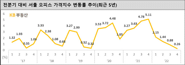 KB국민은행(은행장 이재근)의 부동산 정보플랫폼 KB부동산이 2022년 4분기 ‘KB 오피스 투자지수’를 발표했다.