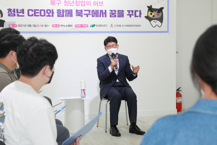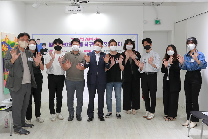 이날 행사는 북구 지역청년 창업가들의 창업지원 정책 이해도를 높이고 지역 내 청년창업을 활성화하고자 캠퍼스혁신파크, 융합특구지역 등 대규모 창업프로젝트와 관련된 지역 현안을 두고 토의했다.