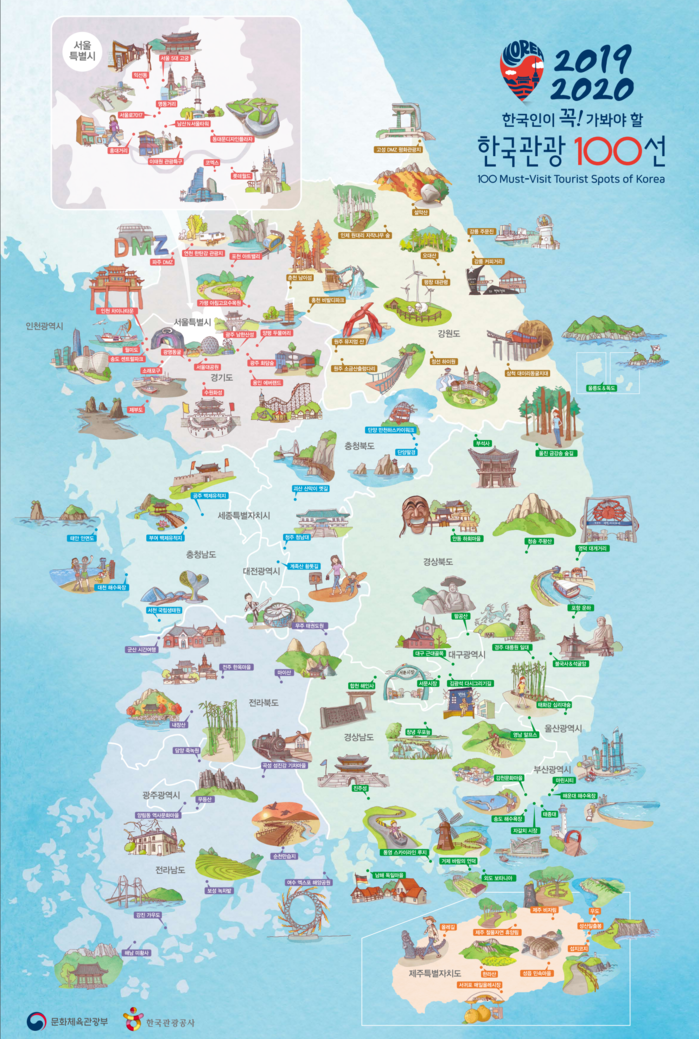 ‘한국관광 100선’ 지도도 제작해 기념품과 함께 전국 관광안내소, ‘한국관광 100선’ 대상지에 배포되기도 한다.