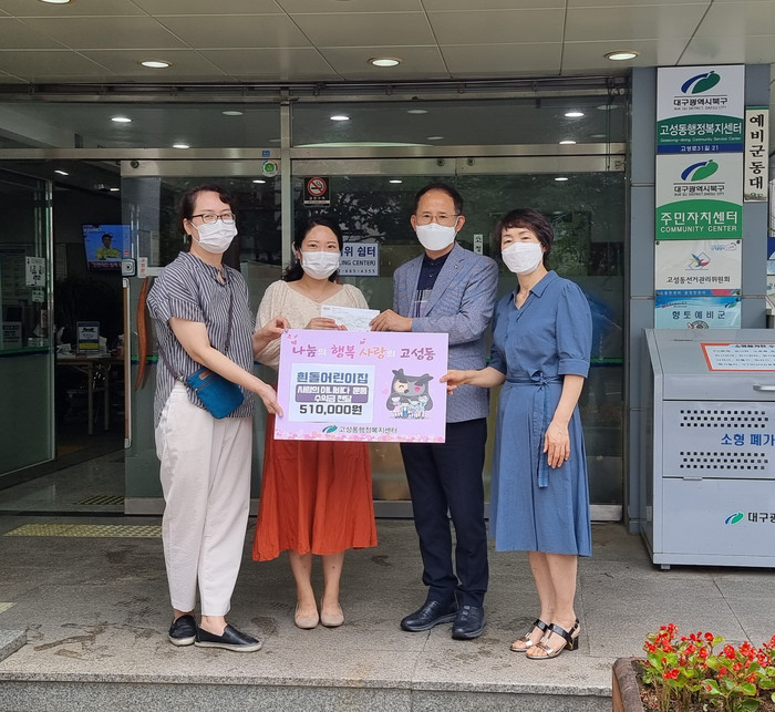 [로컬세계 박세환 기자]대구 북구 고성동 흰돌어린이집(원장 박효숙)은 ‘사랑의 아나바다 바자회’로 모은 51만원을 3일 고성동 행정복지센터(동장 채영수)에 이웃돕기 후원금으로 전달했다.