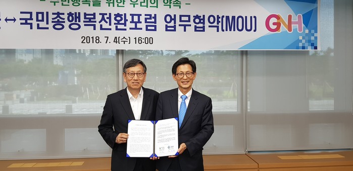 4일 유기상 군수는 박진도 지역재단 이사장과 함께 국민총행복전환포럼(GNH) 업무협약(MOU)을 맺고 ‘군민행복시대’로 나아가기 위한 변화의 첫걸음을 뗐다.