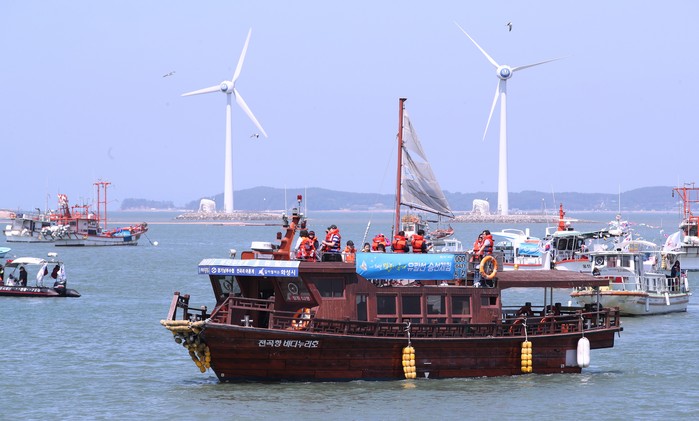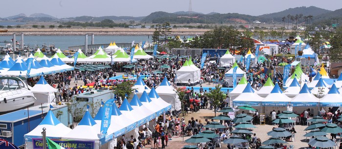 | ▲2017 화성 뱃놀이 축제에 온 관광객들이 유람선과 요트, 보트 등에 몸을 싣고 바닷바람을 맞고 있다. |