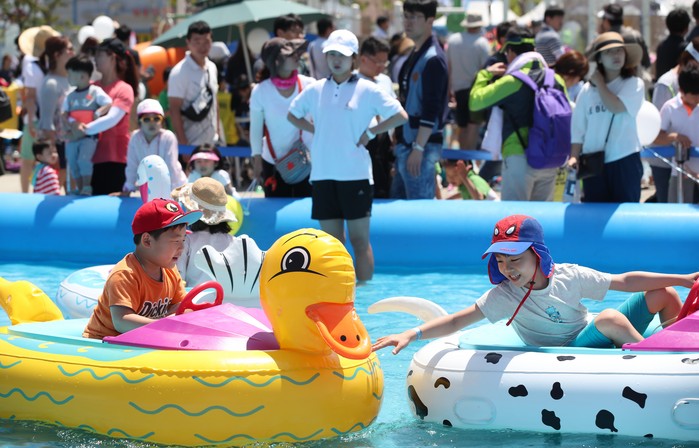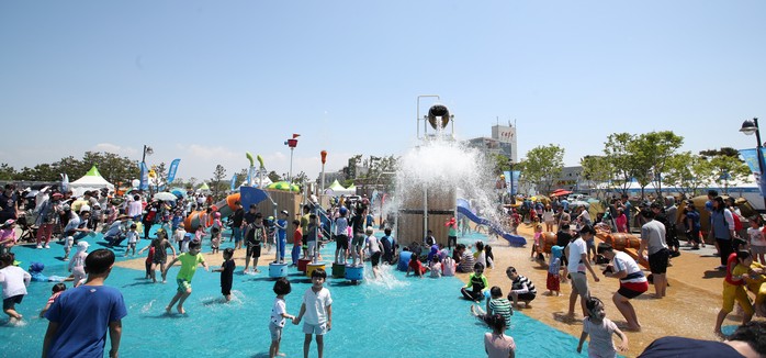 | ▲2017 화성 뱃놀이 축제를 찾은 시민들이 물놀이를 즐기며 무더위를 식히고 있다. |