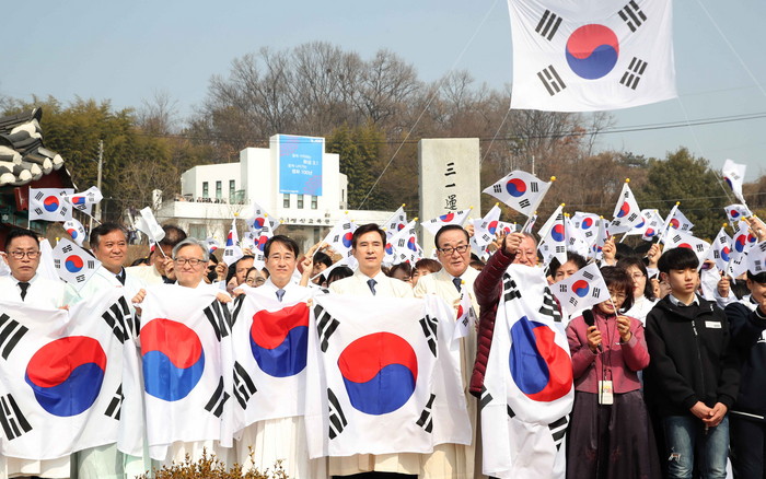 [로컬세계 고용주 기자]3월 1일 오전 10시 55분, 화성시 우정읍 행정복지센터 앞마당에서 학생과 주민 1000여 명이 대열을 이루며 조암시내로 향했다. 상기된 얼굴들 사이로 ‘대한독립만세’가 터져 나왔다. 굳게 쥔 태극기는 걸음을 옮길 때마다 바람에 나부꼈다.
