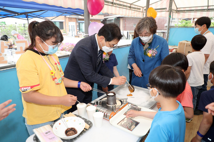 이날 허 시장은 동보원 아동들에게  간식키트 및 컵과일을 전달했으며, 추억의 달고나 만들기, 페이스 스티커, 플로라이드 사진찍기 등을 하며 시설아동들과 만남의 시간을 가졌다.