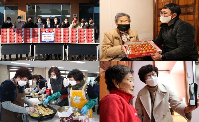 의성에서 딸기 농사를 짓는 청년 농부 모임은 딸기 200상자를 기부하고 코로나 확산 방지를 위해 고향을 찾지 못하는 자식들을 대신해 마을 어르신들을 위로했다.