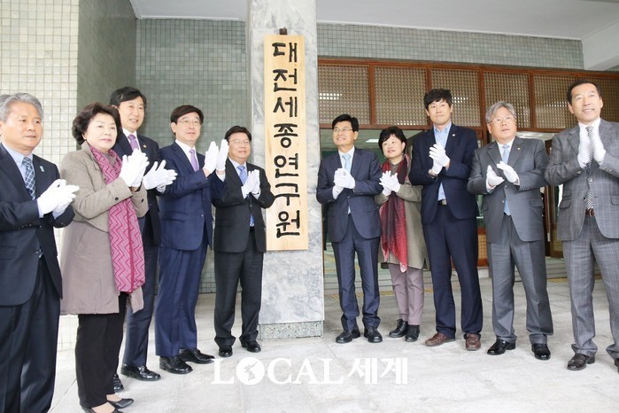 ▲권선택 대전시장과 이춘희 세종시장, 유재일 대전세종연구원장 등이 대전세종연구원 개원식을 갖고 있다. 오영균 기자. |